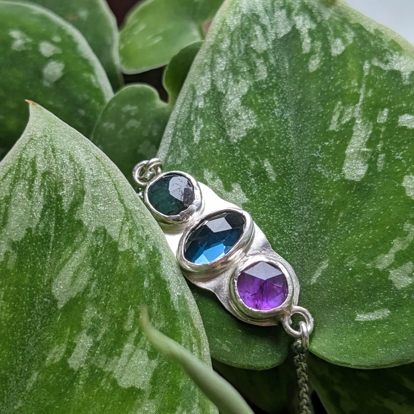 Birthstones pendant with gold wire and sterling silver setting