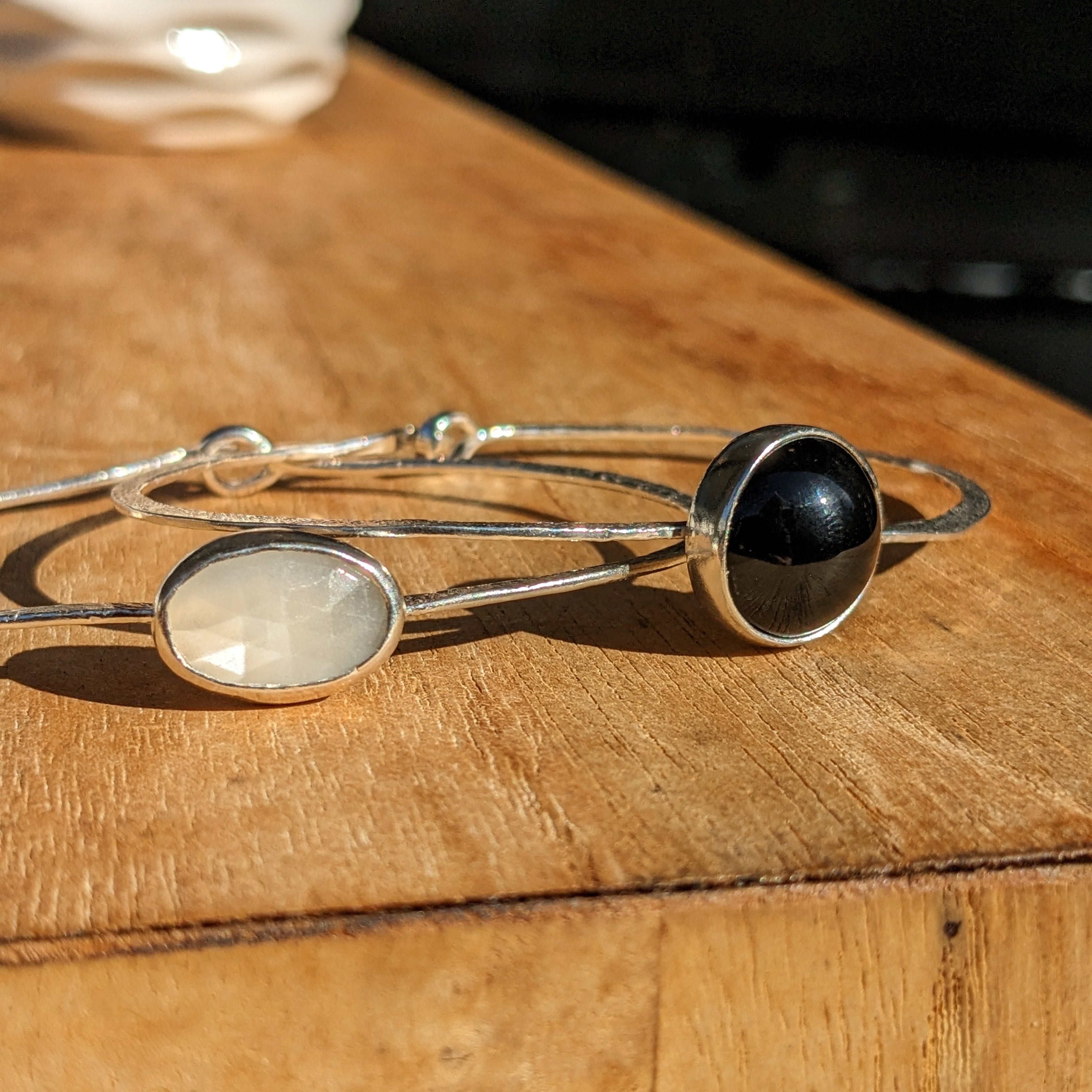 White moonstone and Onyx bangle bracelets