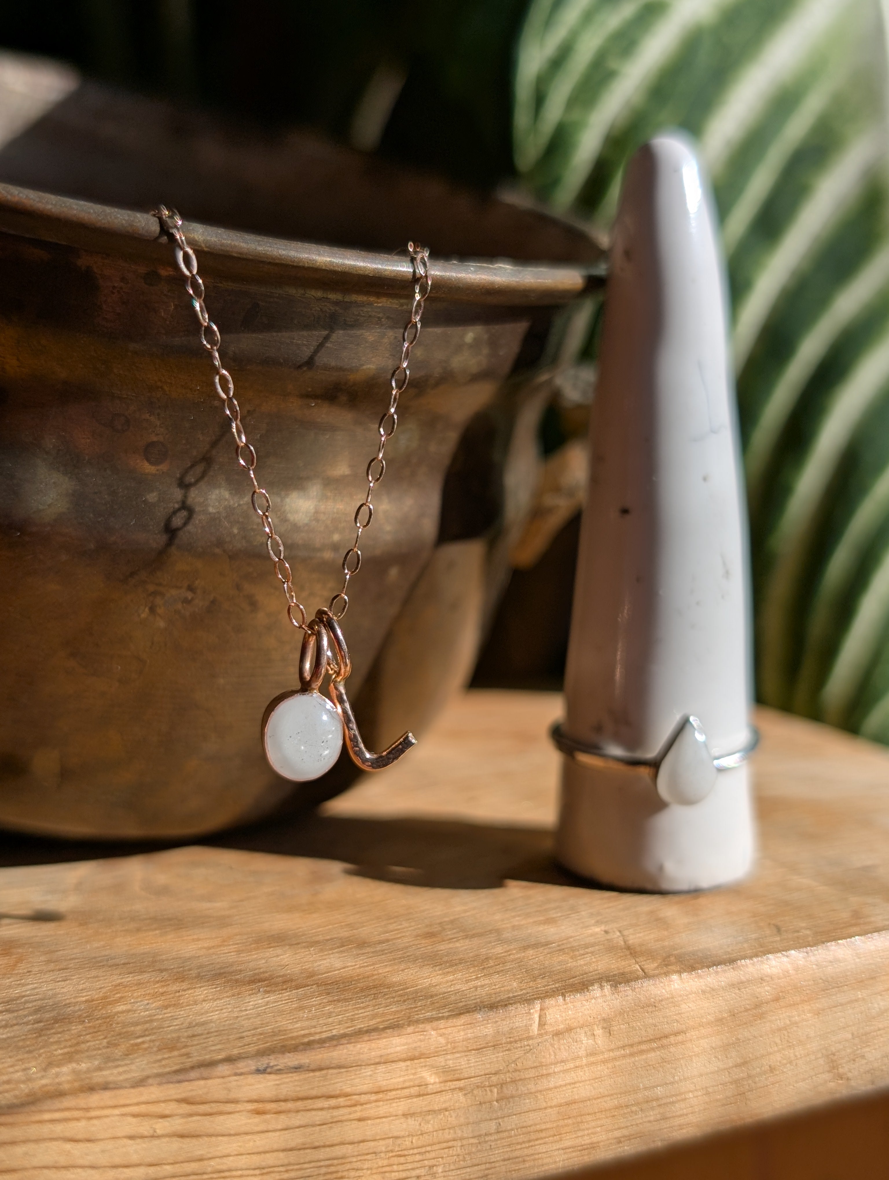 Breast milk Rose gold necklace and silver ring